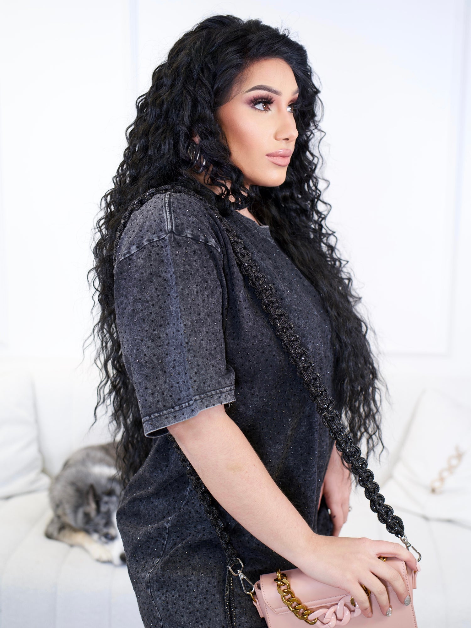 • Rhinestone Purse Strap (Black)
