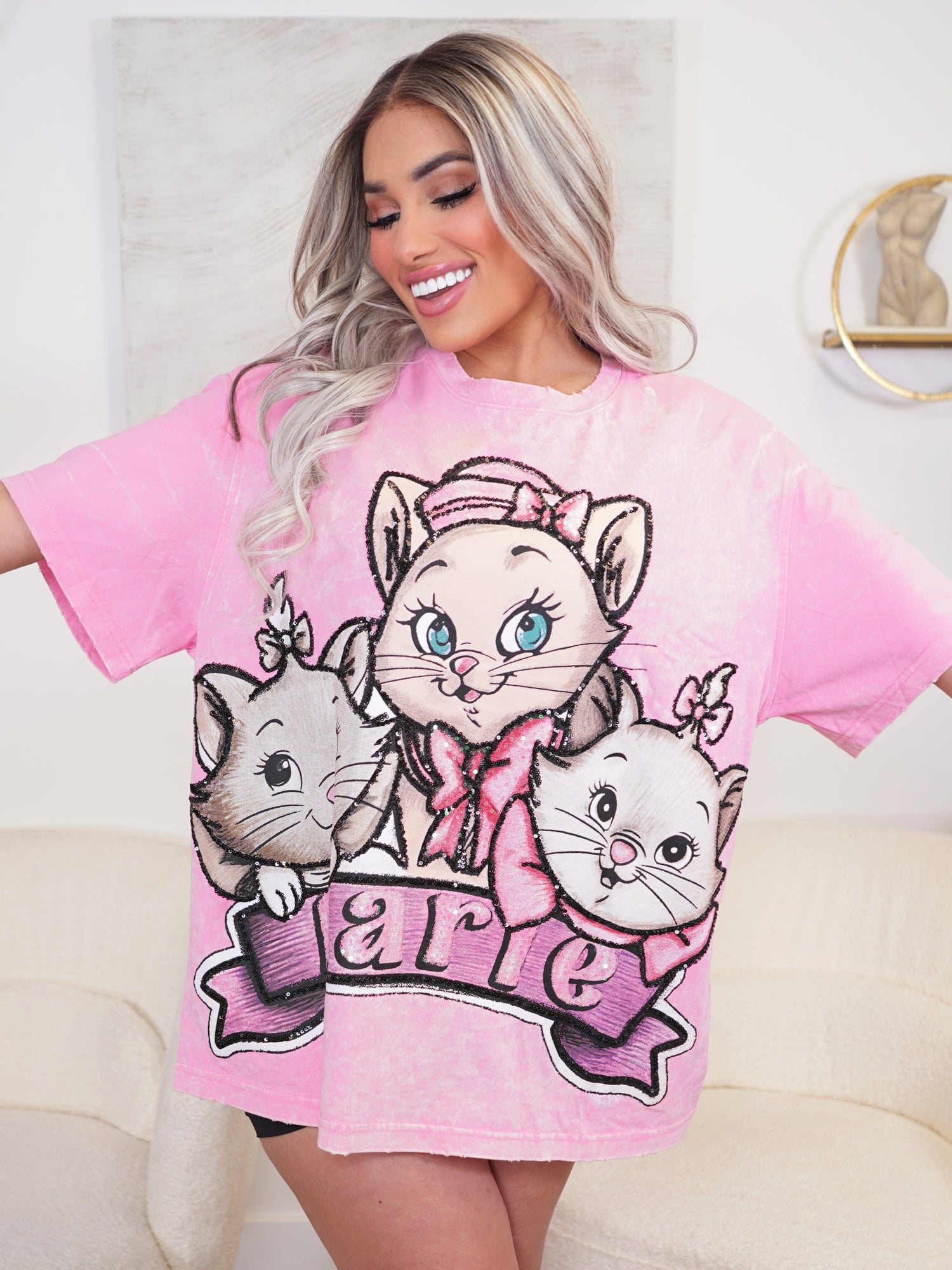 CL1350 Pink Kittens Sequin Top